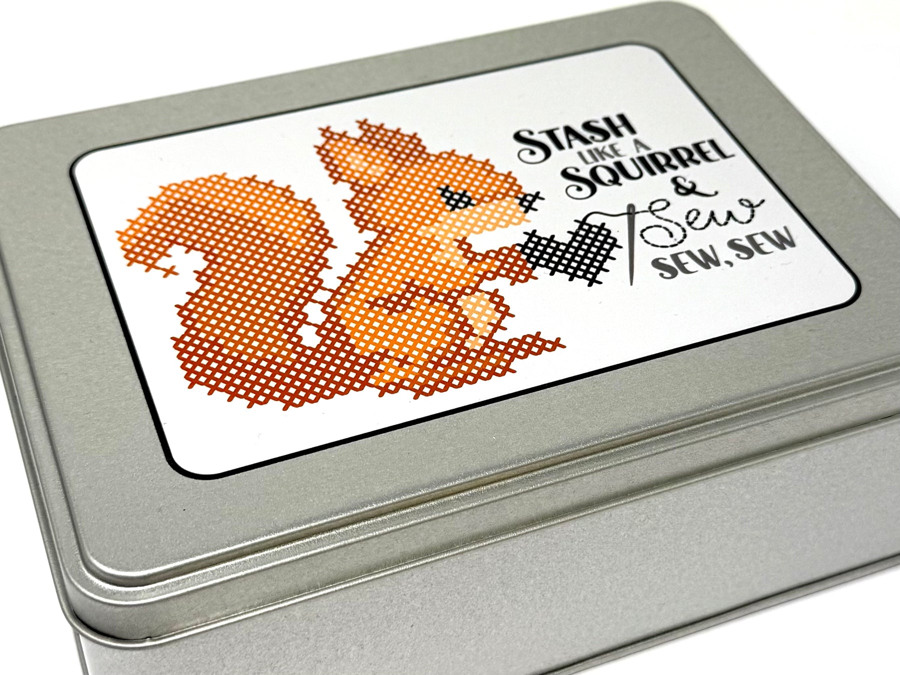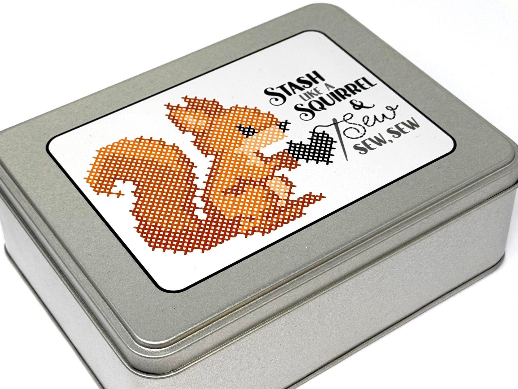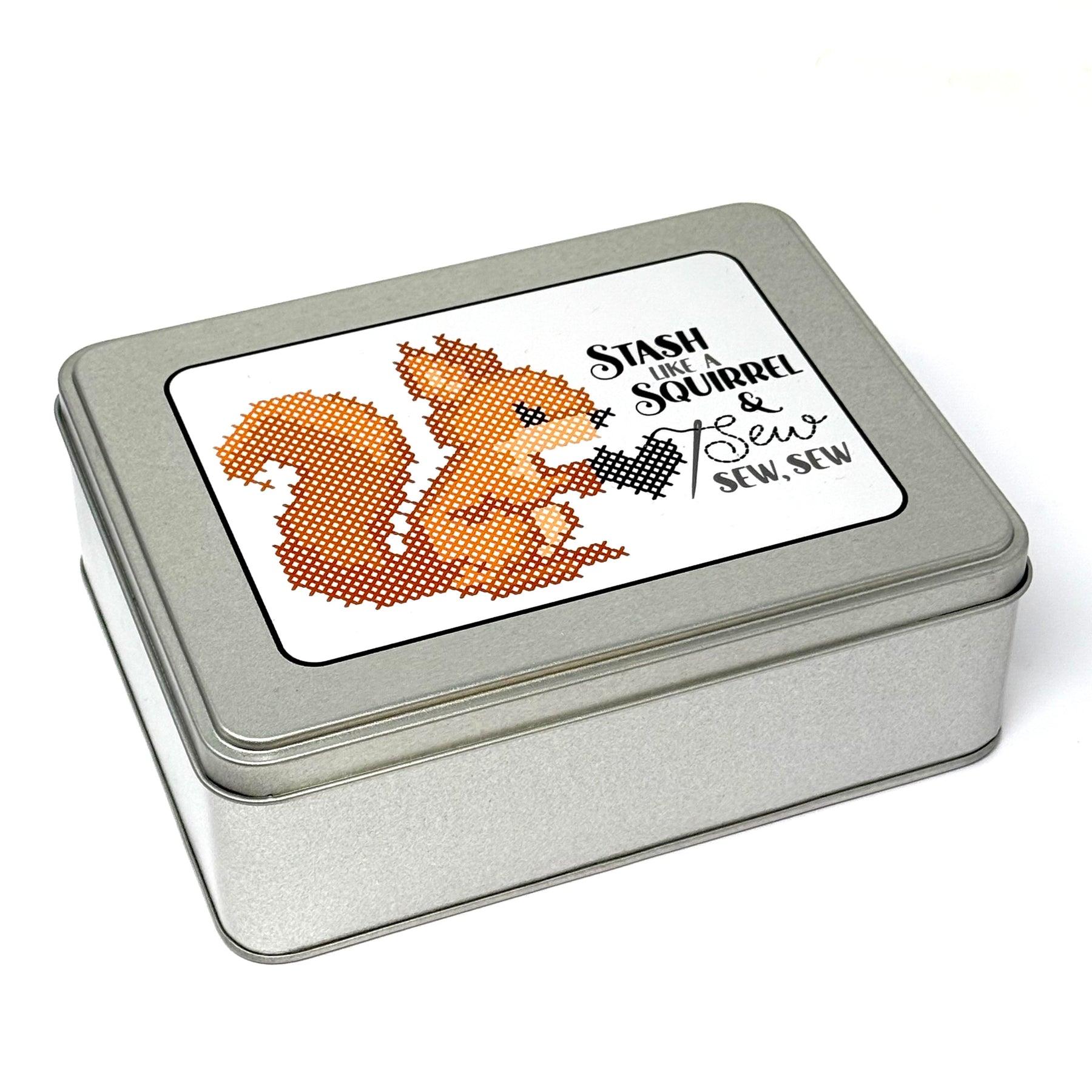 Cross Stitch Squirrel Tin with foam insert | Holds x30 bobbins
