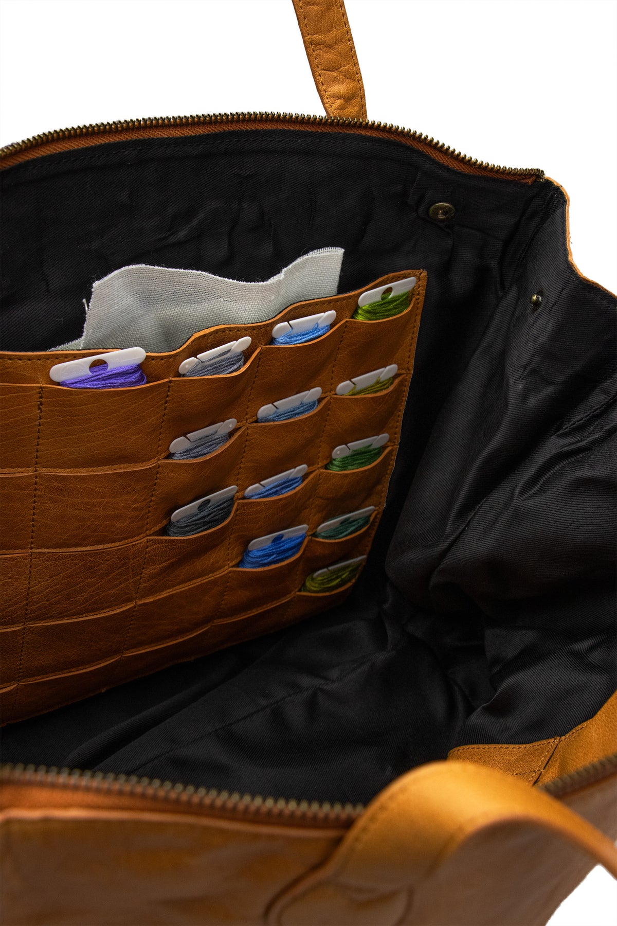 Crafted from high-quality leather, Fro combines durability with elegance, making it an ideal accessory for both casual outings and crafting sessions. The circular design adds a touch of sophistication, while the sturdy handles ensure comfortable carrying.