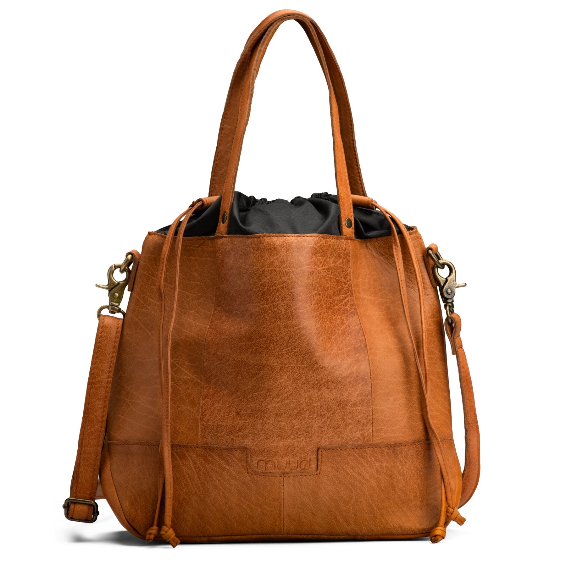 The everyday bag is made by hand in genuine leather bringing a timeless and exclusive look to the design. Both on the inside and outside of the handbag, you find a practical zipped pocket – details that keep your precious accessories in order. The crossbody bag has a removable and adjustable shoulder strap that makes it possible to carry the bag over your shoulder and crossbody. The bag itself is inspired by a drawstring bag, with its two cords that can be used to close the bag.
